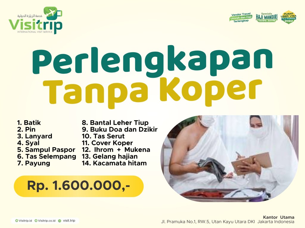 Paket perlengkapan dapat diambil di kantor Syarikah Ekosistem Bisnis - Visitrip Point Makkah, Syare Haya Diyafah, An-Nuzhah, Makkah, 24221, Saudi Arabia, - sesuai jam kerja yang berlaku