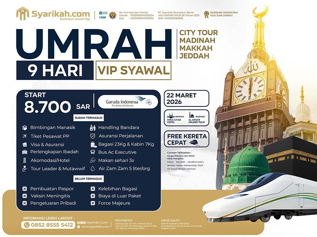 Umrah VIP Syawal | 09 Hari | GRATIS Kereta Cepat!