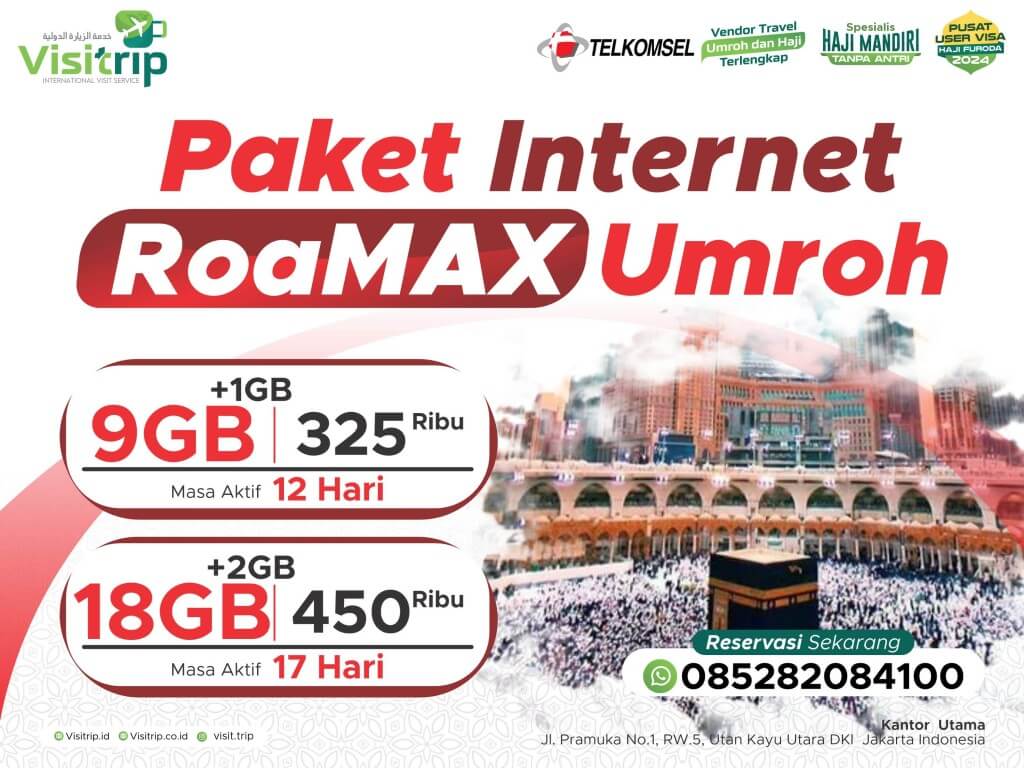 * Kuota Utama akses Internet Luar Negeri (8GB di Arab Saudi, 1GB di Arab Saudi dan Negara Transit)